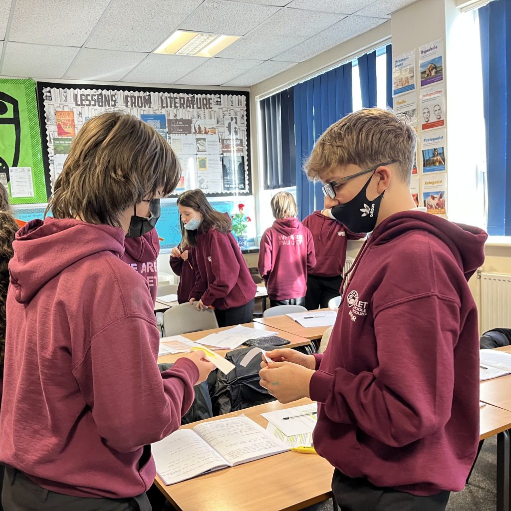 In English, 9BAY played a game of Quiz, Quiz, Trade to help learn some context to the play they are about to study.  They enjoyed quizzing each other and learning lots of facts about JB Priestley.Â