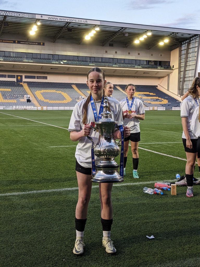 Congratulations to Mia in Year 11 who was player of the match during Derby County’s U18 PL2 Cup Final victory on Saturday against Ascot. Mia scored the crucial equaliser just after half time and then they went on to win 3-1. Well done to brilliant Mia and the whole team.