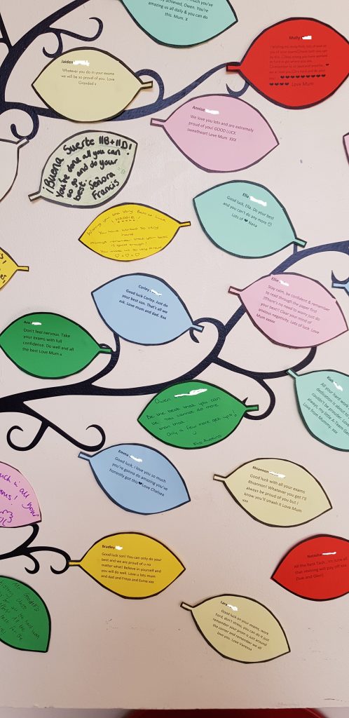 Our good luck tree for students taking exams this summer is looking amazing. It’s full of lovely messages from friends and family #wearepaulet