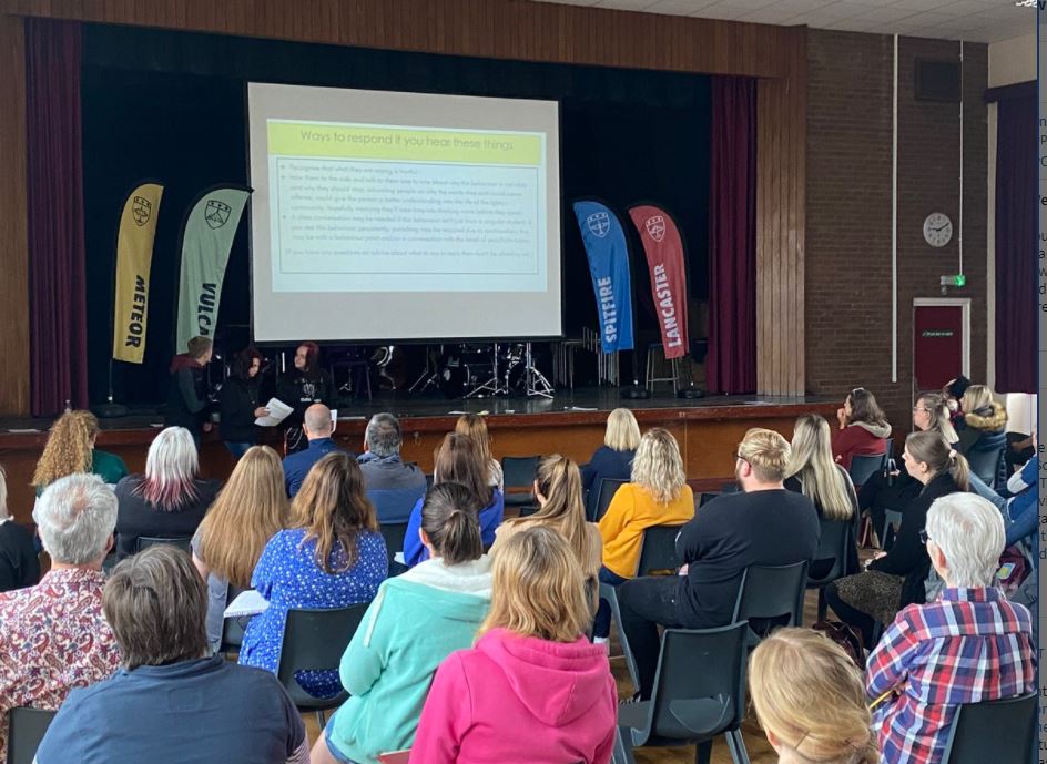 Inset Day 2 – wonderful session delivered to all staff about protected characteristics and hurtful language – delivered by three of our students! #WEAREPAULET #PAULETCHARACTER