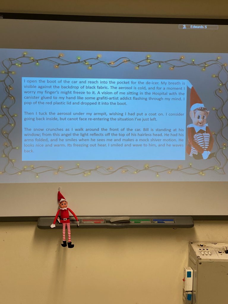 8KMH had to find, correct and explain the ten literacy errors in the opening to this Winter novella! He also enjoyed a spot of reading whilst he was with us as well!