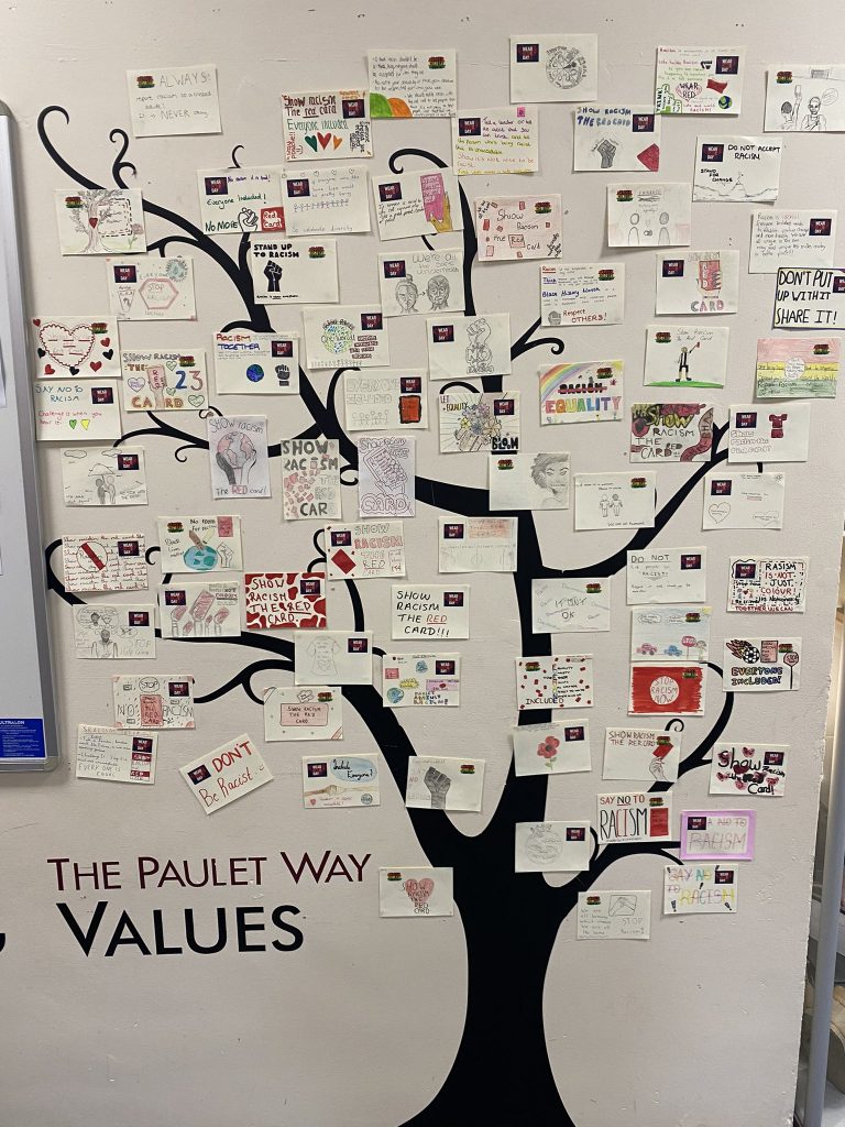 Following on from our ‘Show Racism the Red Card Day’ we have updated our values tree with new anti-racism pledge cards. Congratulations to Alice in Y11 for creating the winning pledge card. #WEAREPAULET