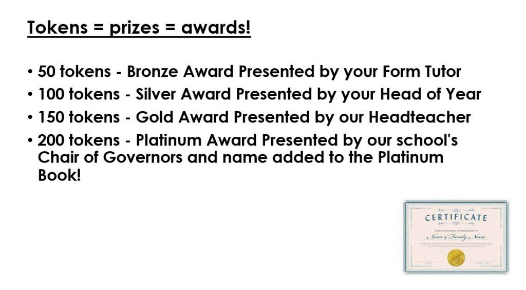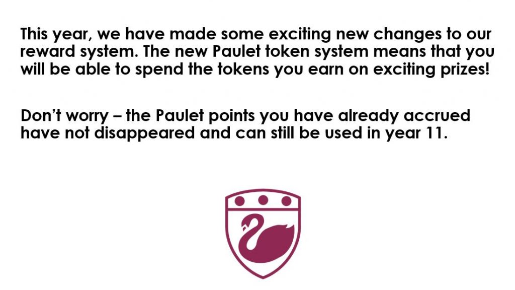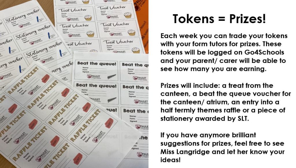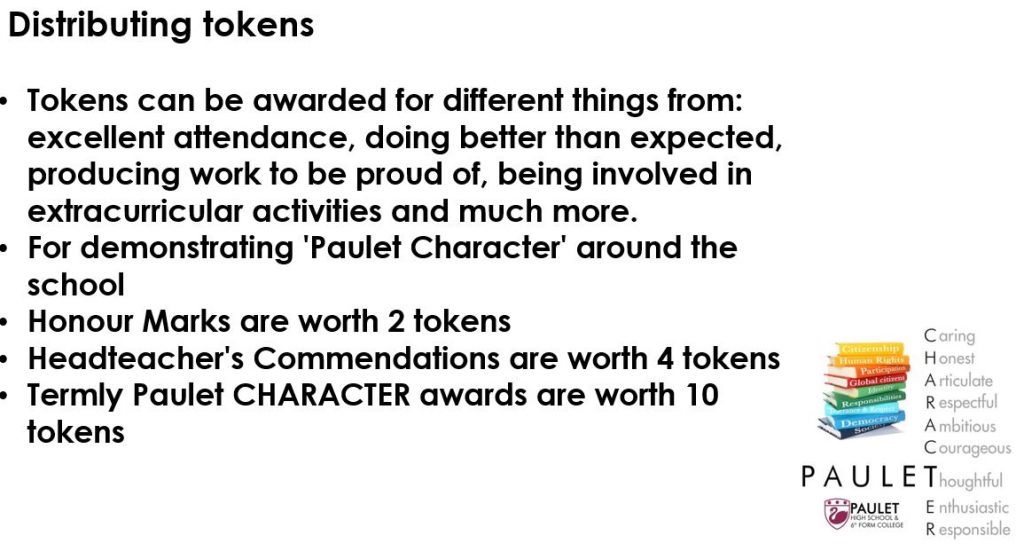 Students have met with their form tutors and discussed the new Paulet tokens system. To be given a token students will need to go above and beyond what we would ordinarily expect of them.