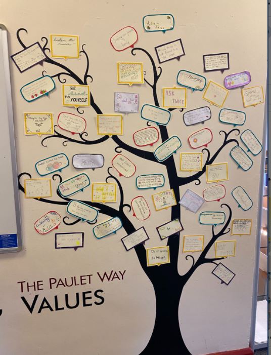 Our ‘Growing Values’ tree is in full leaf again! Looking after our own mental health and well being – top tips from our students. #WEAREPAULET