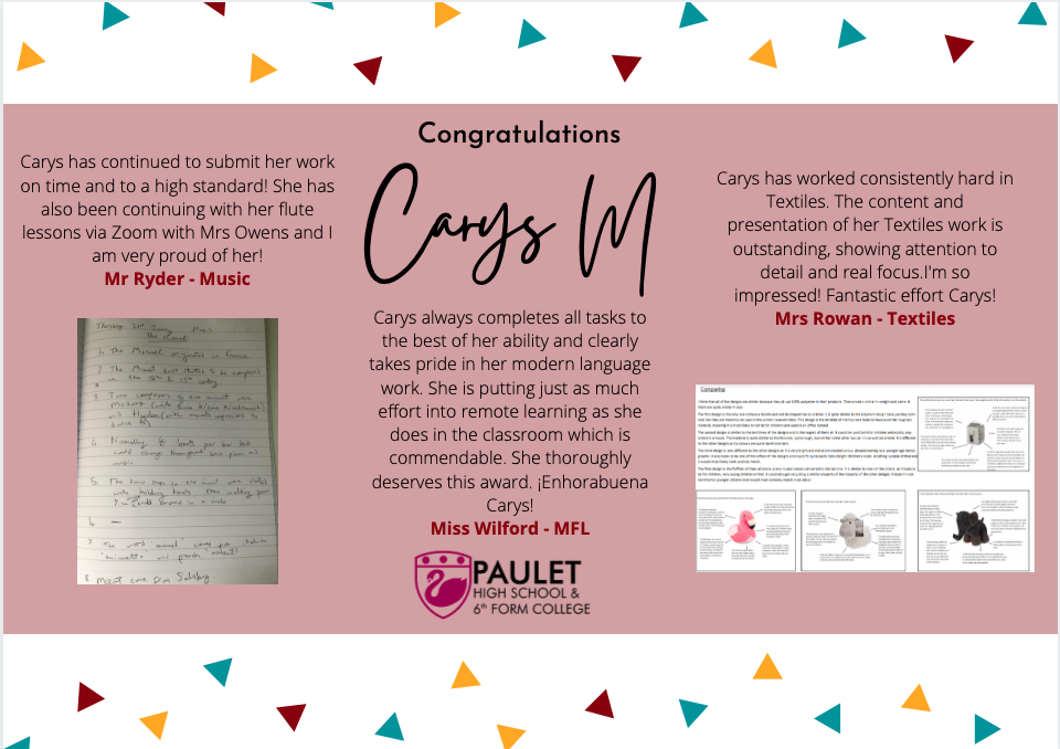 Congratulations to our year 8 winner, Carys M (8RMO) for being
