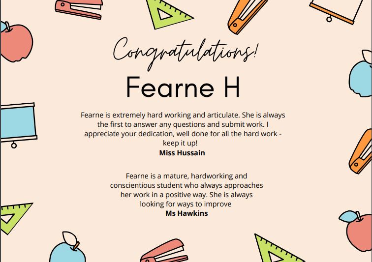 Congratulations to Fearne H – 8ADS! Our year 8 student who