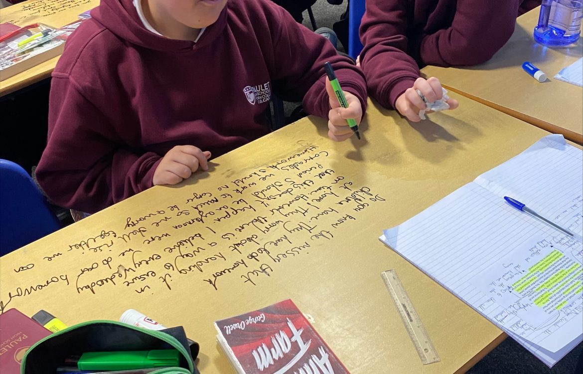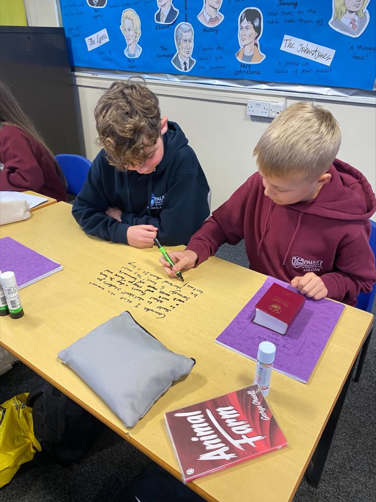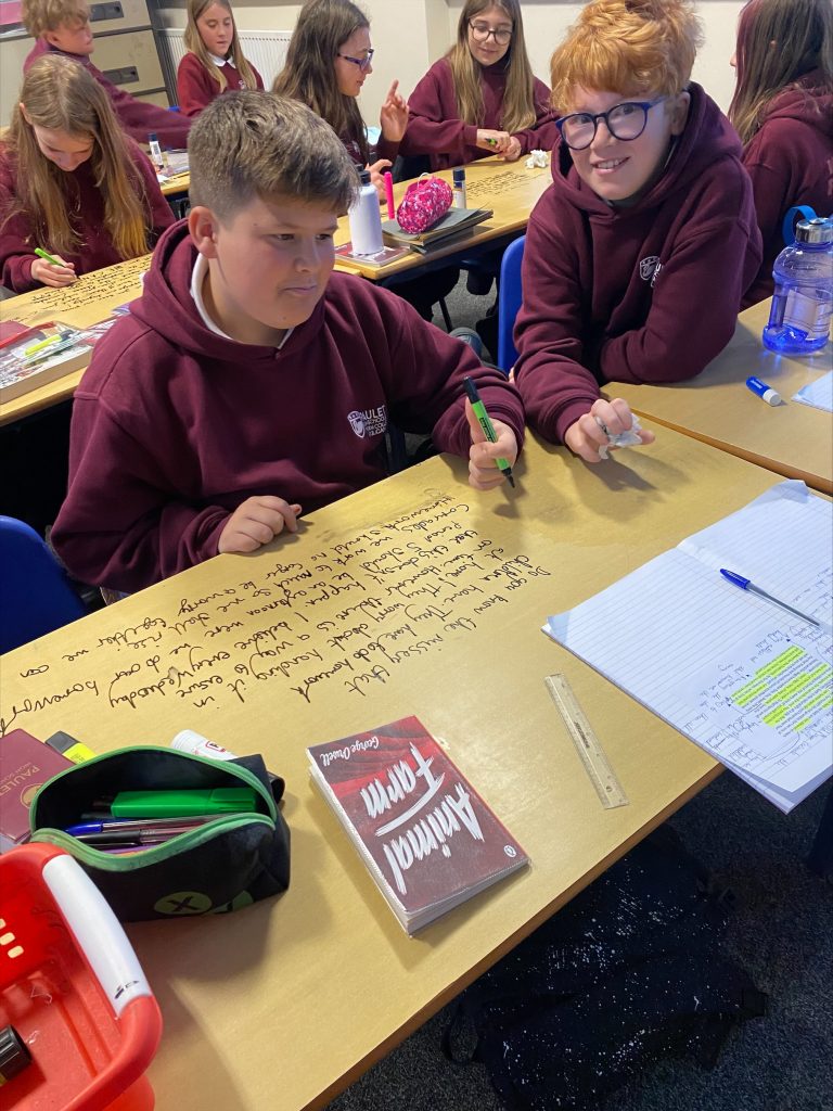 7GPA were inspired by the words of Animal Farm’s Old Major to use persuasive devices to convince their class mates of their cause. Well done to Oliver and Finley who were selected as the most convincing!