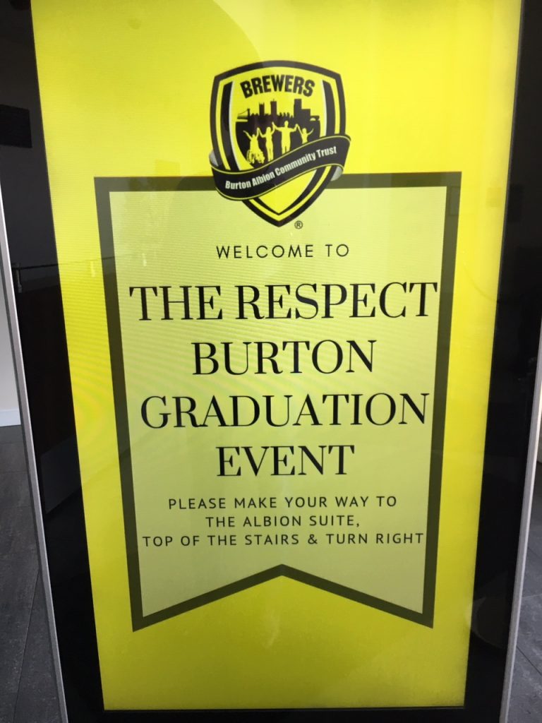 Last night two groups of our year 8/9 students were invited to attend the Respect Burton graduation event at the Pirelli Stadium. The students have completed a character-building course across the academic year, run by Burton Youth for Christ and the Burton Albion Community Trust. Mr Kelly is hugely proud of all students involved and would like to thank Matt and Sarah for the massive impact this course has had. Well done to Oliver G and Olivia R for sharing their experiences of the course with a packed room of people!