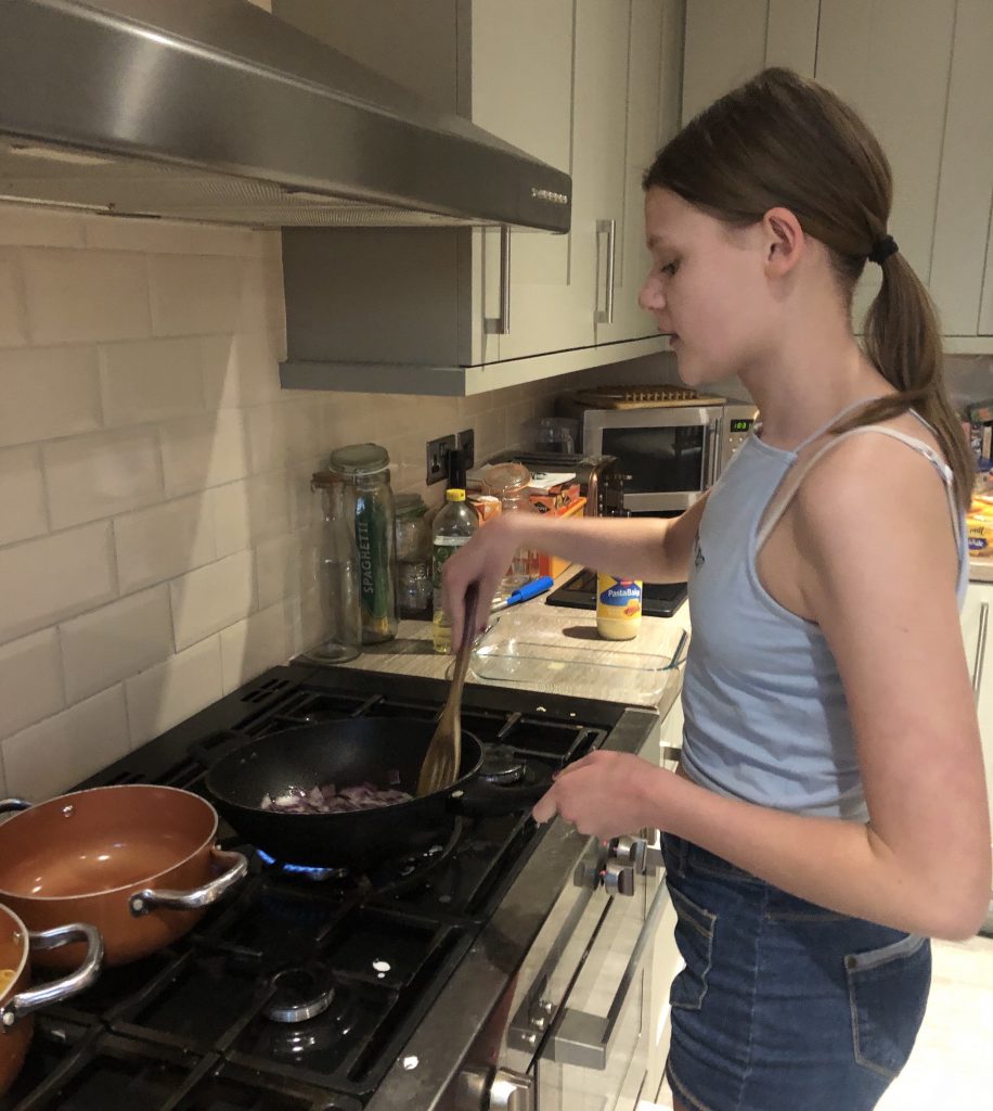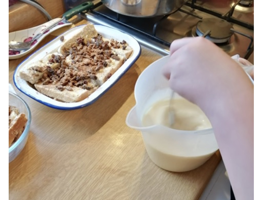 Further food skills displayed over the weekend as more Y8 prepared tasty dishes for their families, with Abbie T’s dad appreciating his full English breakfast, to a special bread and butter pudding at Chris D’s along with Katie S’s great chicken and pasta bake and Josh A’s fab fish pie. To quote the title of Jamie Oliver’s food programme produced especially last week “Keep Cooking and Carry on” – showing how to adapt recipes when all ingredients are not available during this time!