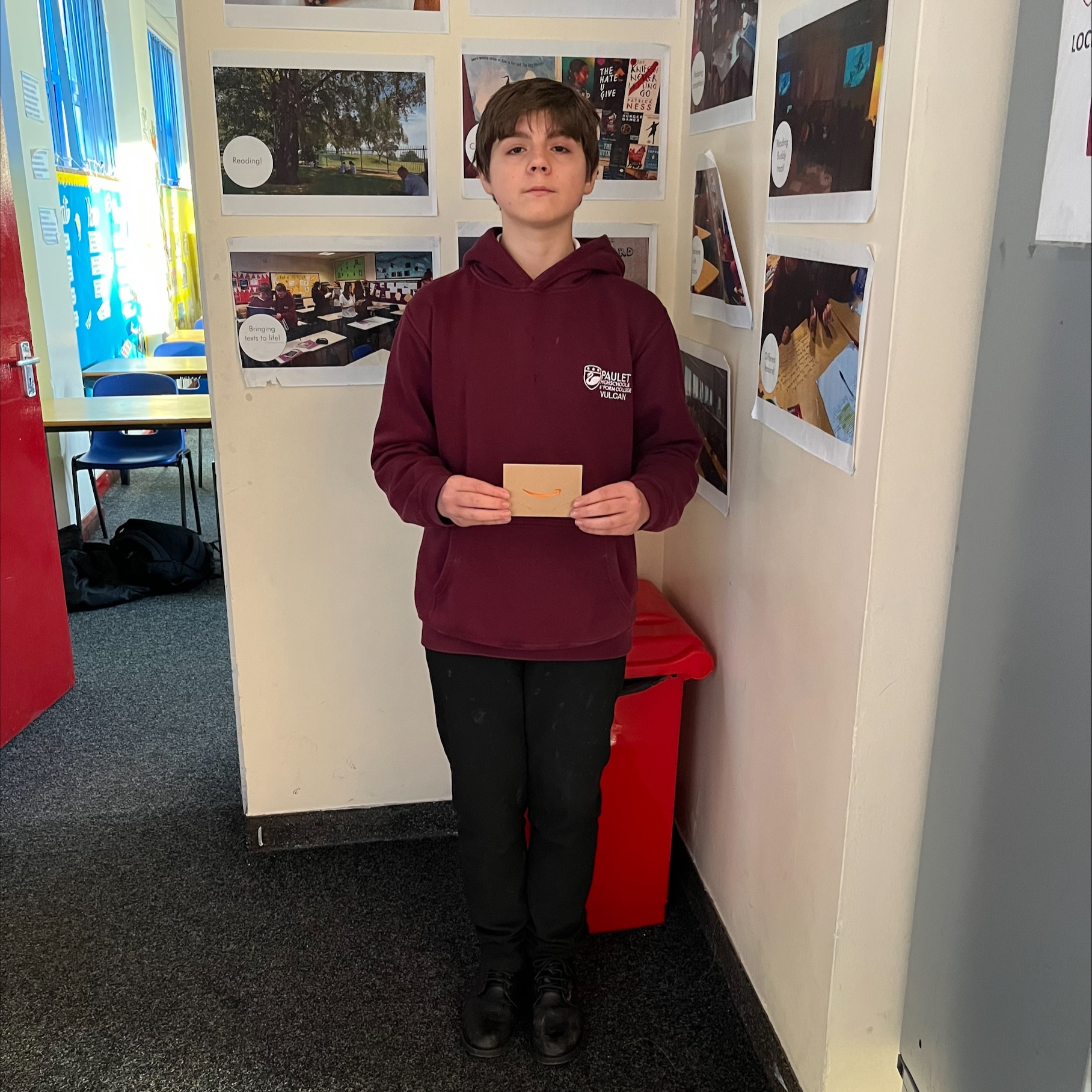 Congratulations to Tyrese 7JEB, Ava 8NLO, Dmitrij 9WME, Shay 10SBA and Valerija 11LT who have all won an Amazon gift card this half term in our prize draw raffle. Well done for earning lots of tokens!