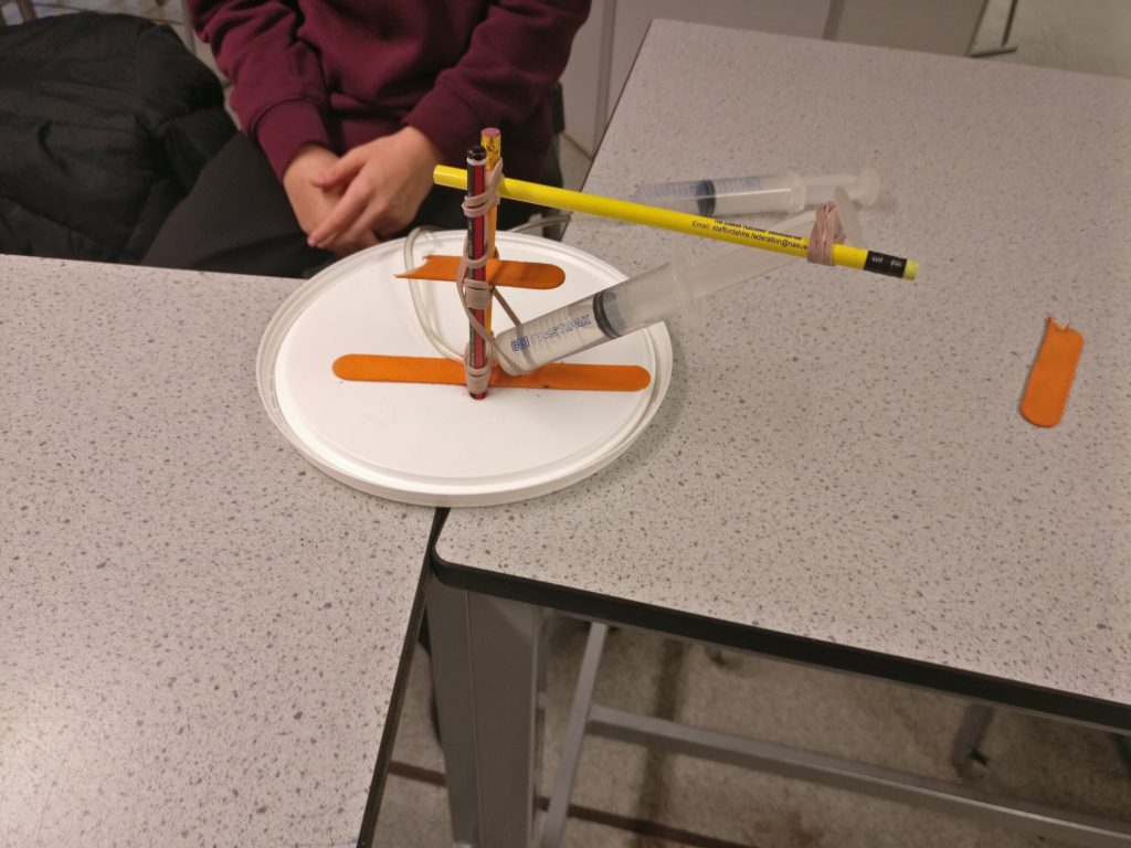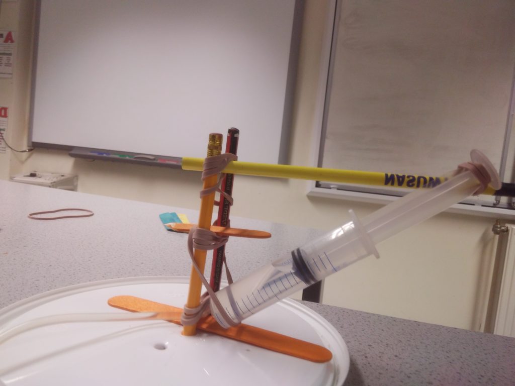 Rhys, Hayden and Skye in Y8 made a brilliant entry to the University of Leeds Fluid Dynamics competition. They made a hydraulic arm using syringes which was used as an arm to raise and lower a pencil. The winners of the competition will be announced by early January. Fantastic effort made by all.Â