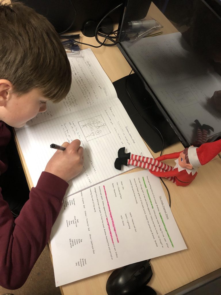 The literacy elf made a surprise appearance in Ms Lester’s year 7 Ethics lesson on Friday. The students were reading a Hindu creation story and were encouraged to highlight areas where the story could be improved. Students then took on the task of improving the story through the use of adjectives and providing more information surrounding the battle between Vishnu and the evil demon.