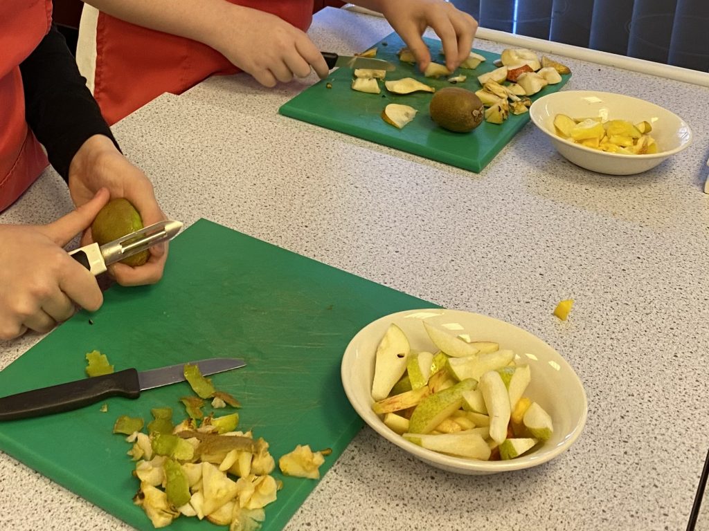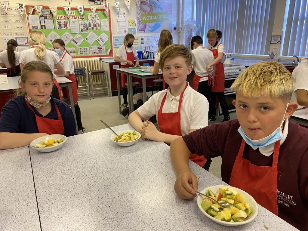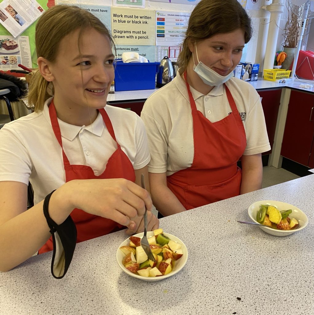 So good to see Y7 in the Food room last week, carrying out much missed practical work. Putting into practice work covered remotely and In the classroom, observing hygiene and safety rules, following the Eat Well guidelines, practising all important knife skills and enjoying 5 Aday!